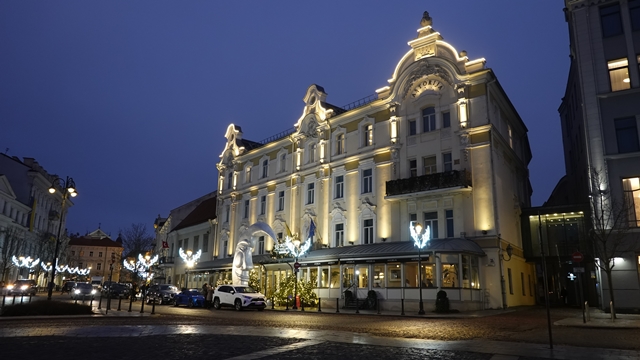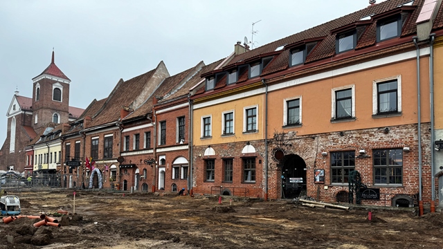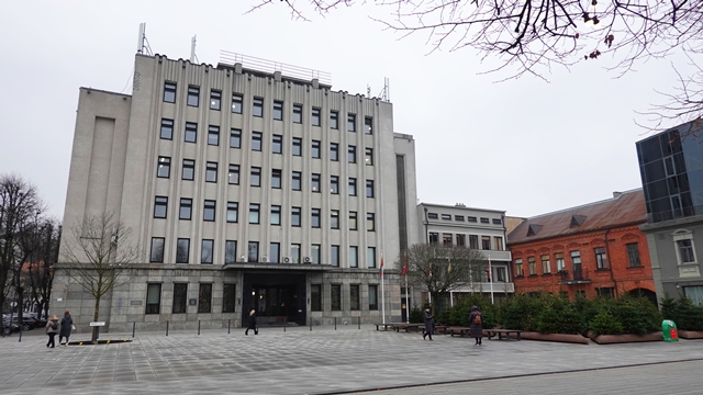 El edificio del imponente Ayuntamiento actual fue construido en 1799 en estilo neoclásico, según diseño del arquitecto lituano Laurynas Gucevičius. Se pueden visitar sus sótanos que datan del antiguo edificio de estilo gótico.