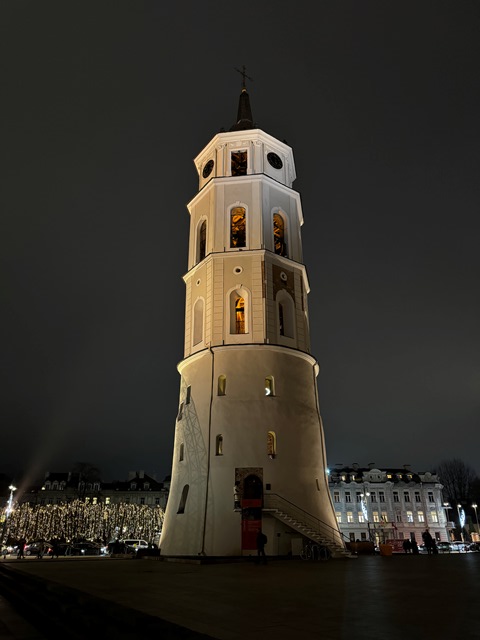 En el exterior sorprende su campanario construido separado del edificio principal con sus 50 metros de altura donde se puede subir previo pago de 5€, pero en mi opinión son mejores las vistas desde la Torre de Gediminas.