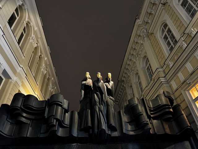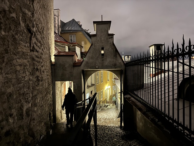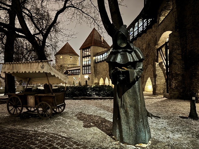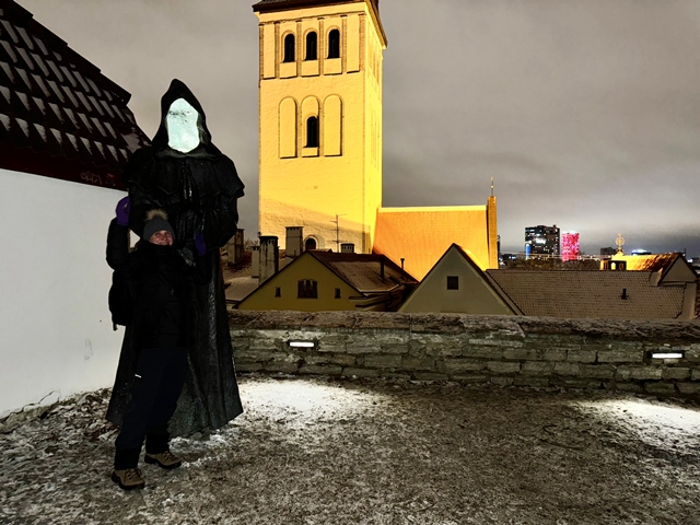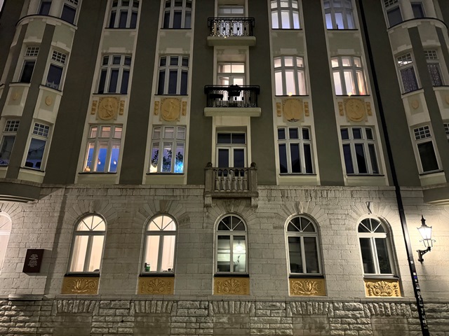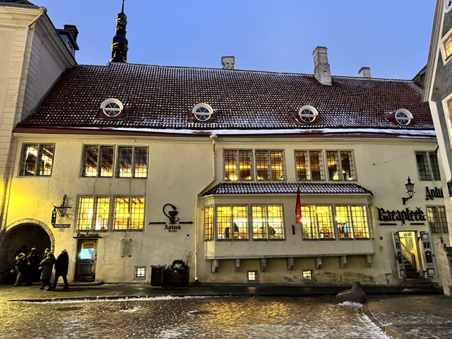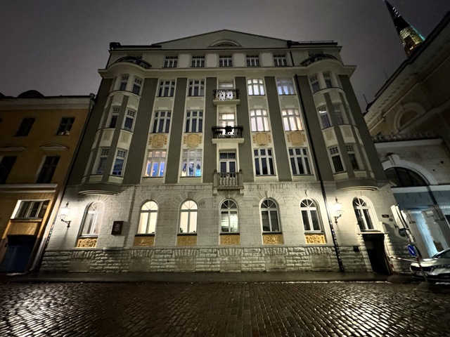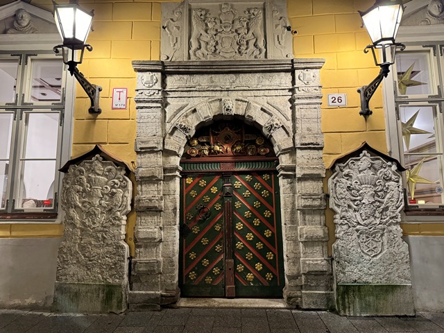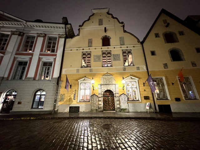 En nuestro recorrido callejero por la noche, pasamos frente a la Casa de los Cabezas Negras del siglo XIV, que al igual a la de Riga fue la sede de la asociación de comerciantes solteros de la Liga Hanseática, la podéis encontrar en la calle Pikk, 26, destaca su hermosa puerta del siglo XVI. En la actualidad es sala de exposiciones.