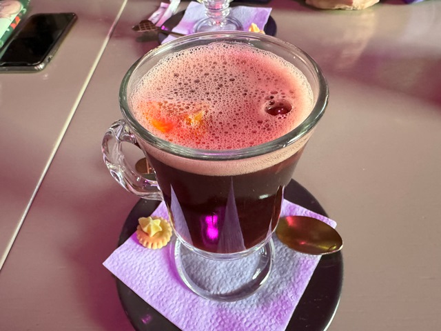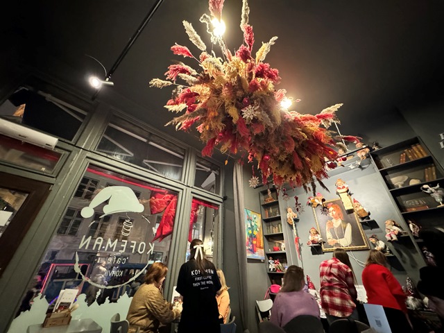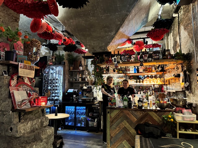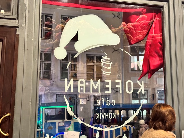 Antes de la cena nos tomamos un té, bueno la verdad el té se lo tomó mi pareja yo preferí otro vino caliente, que ya le habia cogido el gustillo, en el bar Kofeman Cafe / Wine, un lugar con mucho encanto.