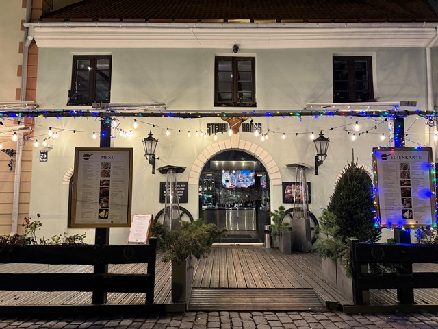 Pasamos frente a este restaurante temático medieval, donde entramos para intentar almorzar, pero estaba todo reservado, así que nos tuvimos que conformar con un bocata este día, es de los restaurante más famosos de la ciudad, pero es mejor reservar con bastante antelación. Se encuentra en la calle Vana turg 1.