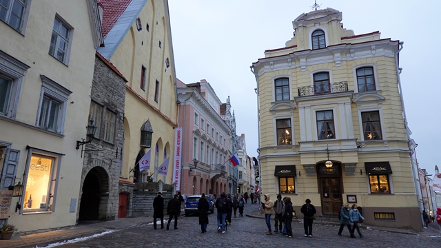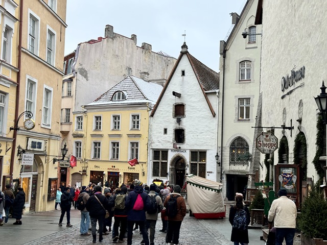 Paseamos por la famosa calle Pikk, una de las mas largas de la ciudad, repleta de comercios y de coloridas casas, antes de llegar a les cercanías de La Gran Puerta de la Costa, nos encontramos con las casas conocidas como las 3 hermanas, unas de las más antiguas.