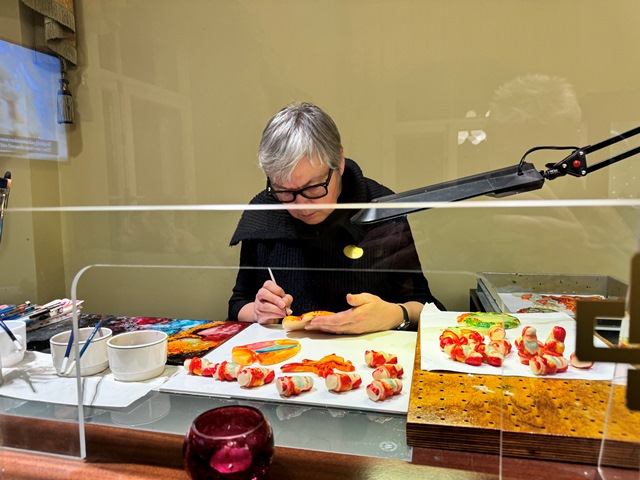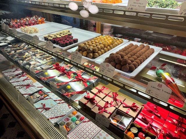 En las cercanías de la plaza del ayuntamiento visitamos la Sala del museo de mazapán Kalev o Kalevi martsipani muuseumituba, y en cuya cafetería nos tomamos un té y un chocolate caliente con pastas.