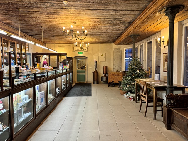 En la plaza del ayuntamiento visitamos la histórica farmacia, una de las más antiguas de Europa, es de entrada gratuita, donde pudimos ver las estanterías y tarros originales e instrumentales, nos dijeron que data del siglo XV