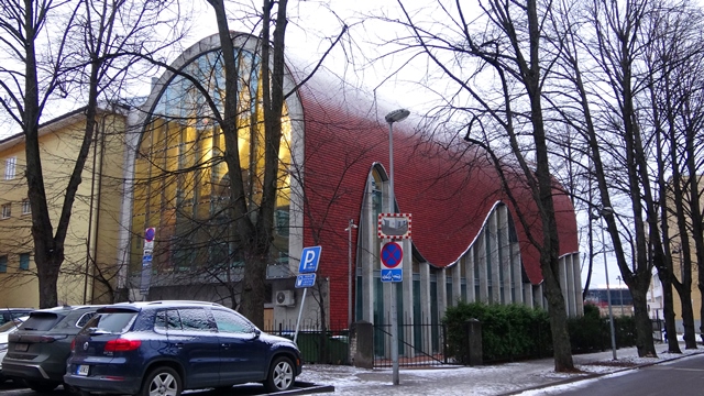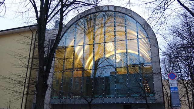 Tomamos la calle Karu que nos llevó hasta la Sinagoga de Tallin o Sinagoga Beit Bella inaugurada en 2007 gracias financiaciones privadas, se trata de un edificio ultramoderno acristalado, fue la primera sinagoga en abrir en Estonia.