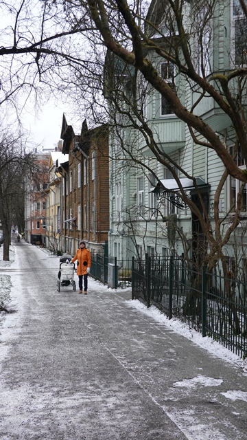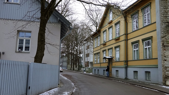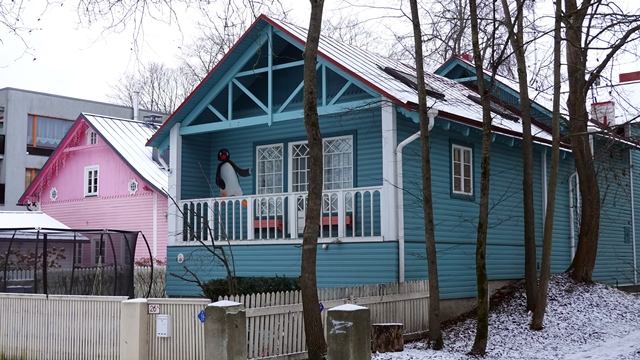 Seguimos por la avenida Narva hasta la Iglesia Metodista, con su puntiagudo tejado, desviándonos por la calle A. Weizenbergi , repleta de hermosas y coloridas casas tradicionales de madera.