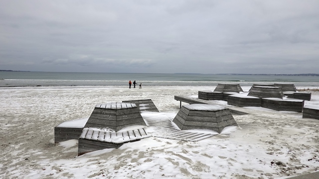 Fue muy agradable recorrer el paseo marítimo en esta época del año, viendo la nieve sobre la arena y con la paz del poco turismo costero que hay en invierno.