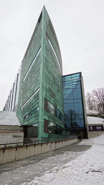 Su espectacular acristalado y puntiagudo edificio, fue diseñado por el arquitecto de origen finlandés, Pekka Vapaavuori, inaugurándose en el año 2006, combinando en su construcción la piedra caliza de la colina de Lasnamäe con grandes cristaleras en color verde para que armonizara con el entorno.