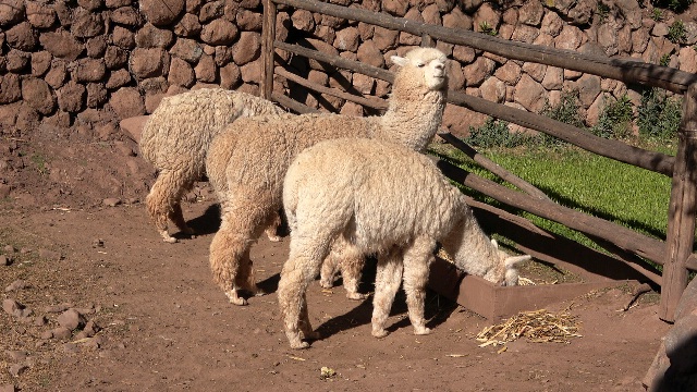 A las 7:30h, tras el desayuno, nos pasaron a recoger para la excursión al Valle Sagrado de los Incas, cuando llevábamos unos 45 minutos de ruta hicimos una parada para visitar unos talleres artesanales del trabajo con lana de alpaca de alta calidad, pero los precios eran muy altos, también tenían un pequeño zoo con llamas y alpacas de varias especies.
