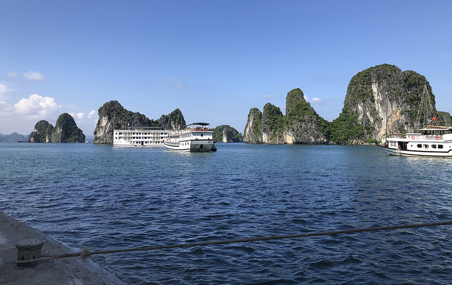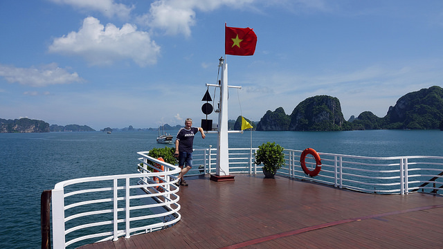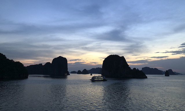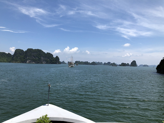 Tomamos un barco turístico motorizado para nosotros solos, me hacen bastante gracia estos barcos vietnamitas, porque siempre llevan la sillas sin atornillar en el suelo, en muchos casos son sillas de plástico tipo jardín.