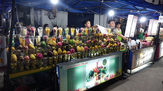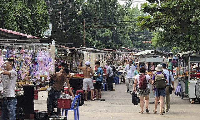Al regresar al hotel pasamos por el mercado nocturno, como es costumbre en estos países, también nos encontramos con un grupo de gente al lado de una moto, que usaban como generador de corriente haciendo un karaoke y varias zonas de tiendas de marcas de lujo con porsches y maseratis aparcados enfrente.