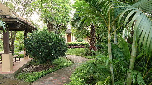 Después de un Trayecto de media hora llegamos al hotel, ya eran las 10 de la noche, el hotel estaba situado a cinco minutos del centro en tuk tuk, muy bien decorado, con abundante vegetación tropical y una bonita piscina que ni probamos.