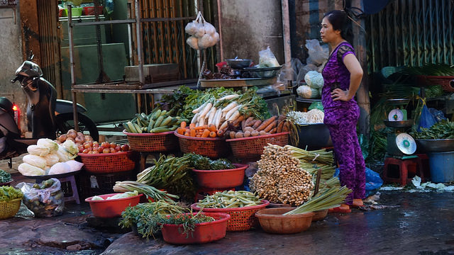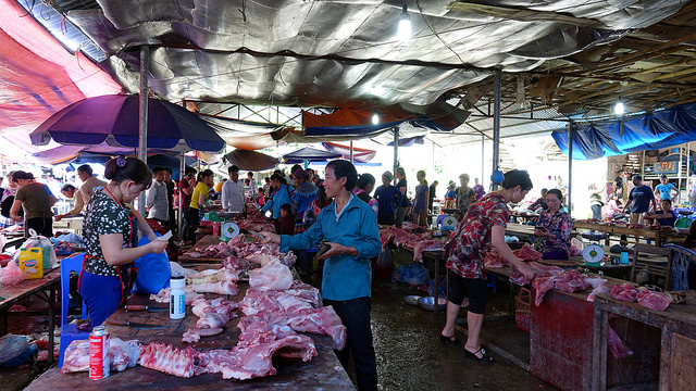 El mercado, como de costumbre en el país, estaba repleto de productos y con estrechos pasillos para poder pasar, que con nuestras mochilas casi no cabíamos, había muchísimo ajetreo ese día.