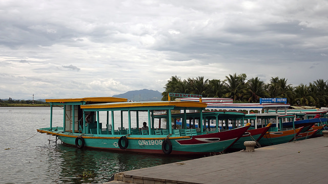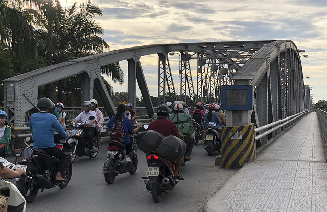 Para regresar al hotel utilizamos una de la barcas, con la proa de dragón, para cruzar el rio del perfume, que salen justo frente a la pagoda, fue un corto recorrido donde pasamos bajo los puentes que cruzamos a pie el día anterior.