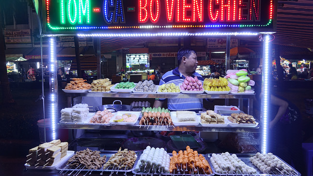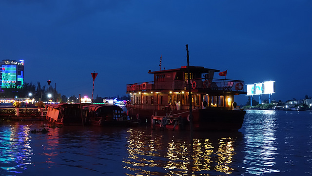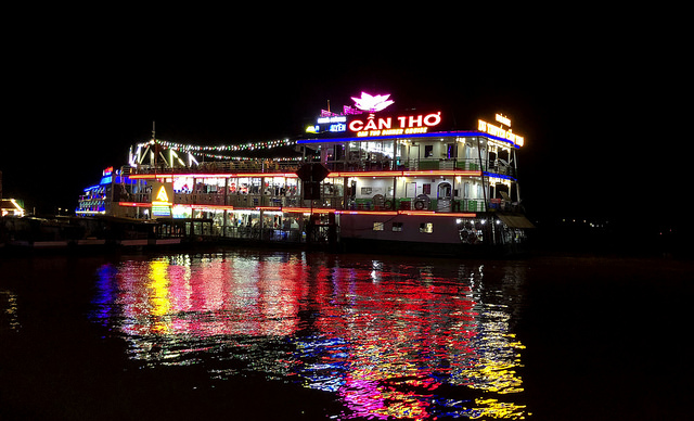 Una vez en Can Tho dejamos las maletas en el hotel West y salimos a pasear por la orilla del río Song Hau, hay varios mercadillos nocturnos, uno de comida y el otro de ropa.