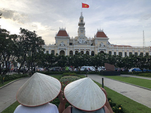 Después de comer fuimos paseando de regreso al hotel, pasamos por otra mezquita, por el edificio central de la policía de Saigón, por un mercadillo donde aprovechamos a comprar los típicos sombreros vietnamitas, ya que al ser el último día era el momento ideal para comprarlos.