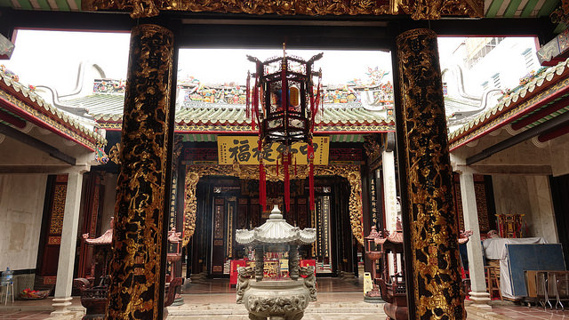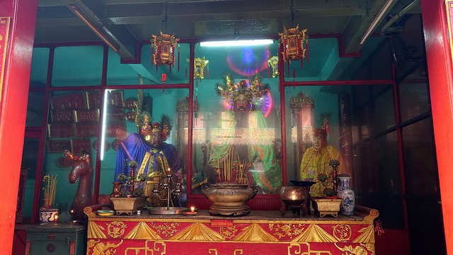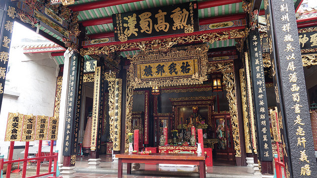Una de las estatuas más famosas del templo es la del caballo rojo de Quan Cong. La estatua de madera de su fiel corcel se considera particularmente sagrada para los devotos del templo, es impresionante ver los trabajos tan bonitos de artesanía que tienen estos templos, frente al templo hay una amplia plaza con un pequeño estanque.