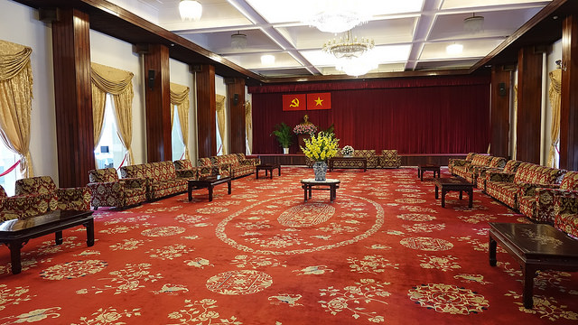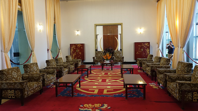 Es un edificio estilo años 60, muy curioso pues no habíamos visitado un palacio de este estilo, parecía sacado de una película del 007 con Sean Connery, dispone incluso de un búnker completamente equipado.