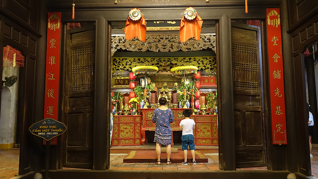 Llegamos a la Pagoda Tam Son Hoi Quan, construida en 1839, dedicada al Dios de la fertilidad Me Sanh, en su interior habían varias fieles haciendo sus plegarias y ofrendas, rogando por quedarse embarazadas, lástima que de golpe llego un autobús lleno de chinos y se acabó la tranquilidad.