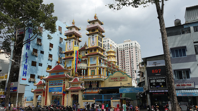 Casi frente a este último templo está la Mezquita de Cho Lon, que solo visitamos por fuera, ya que estaban rezando en ese momento y nos dió un poco de corte meternos.