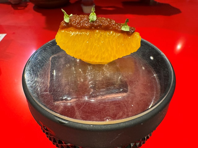 Para redondear la comida me tome el coctel Nam Phrik con Bourbon cherry y whisky ahumado, mermelada de cerezas y mandarina, soda de Nam Phrik de hibiscus y thai basil.