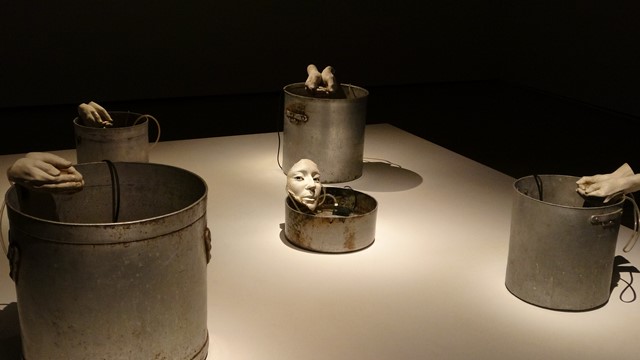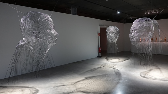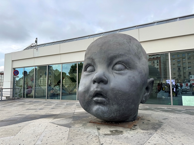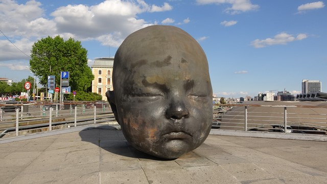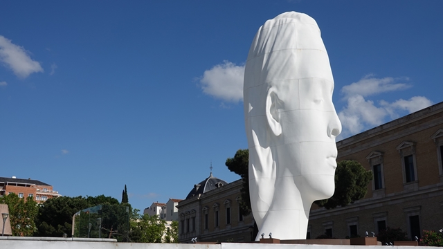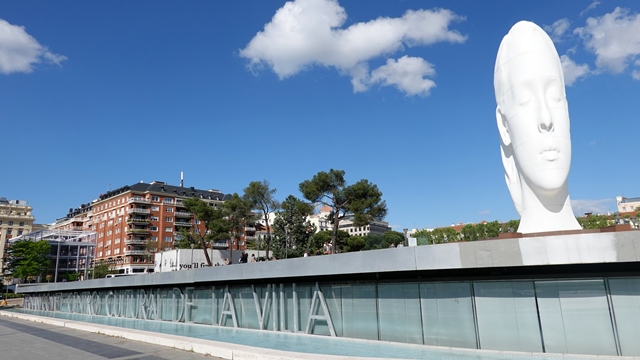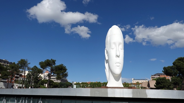 Al salir al exterior de la estación pudimos ver las dos cabezas diseñadas por el artista Antonio López conocidas como Día y Noche, fueron encargadas por el Ministerio de Fomento en 2002, pero resultó que mientras el artista trabajaba en ellas se produjeron los atentados terroristas del 11 de marzo de 2004, decidiendo Antonio López que dichas esculturas fueran un recordatorio de las víctimas.