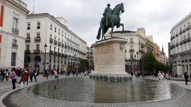 Lo primero que hicimos fue hacernos una foto con el símbolo madrileño por excelencia la Estatua del Oso y el Madroño, a pesar de que habia una zona en obras pudimos hacer las pertinentes fotos sin demasiado problema, el cartel luminosos del Tío Pepe, la fachada de la Real Casa de Correos donde está el campanario de fin de año, la Estatua Ecuestre de Carlos III.