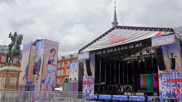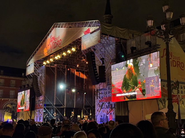 Una vez en la bellísima plaza, resultó que como las fiestas de San Isidro empiezan una semana antes, había instalado el escenario donde cada noche hacían algún concierto que otro.
