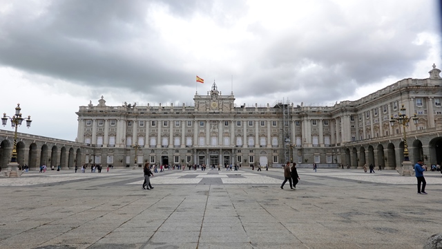 Caminando apenas unos cien metros llegamos a la inmensa Plaza de la Armería del Palacio Real, antiguo lugar de residencia de los reyes, ahora viven en el Palacio de la Zarzuela, situado en una zona mas tranquila, está a uno 10 kilómetros del centro de Madrid.
