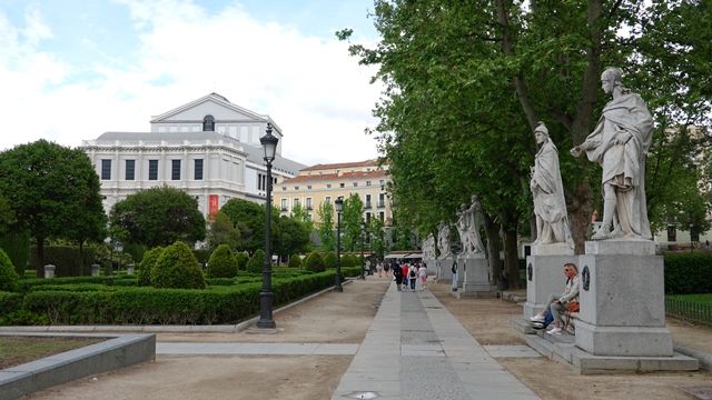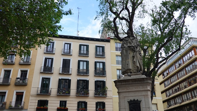 Pasamos por la Plaza Tirso de Molina, que tal y como dice su nombre está dedicada al dramaturgo español del siglo XVII Tirso de Molina, en ella se puede ver su estatua.