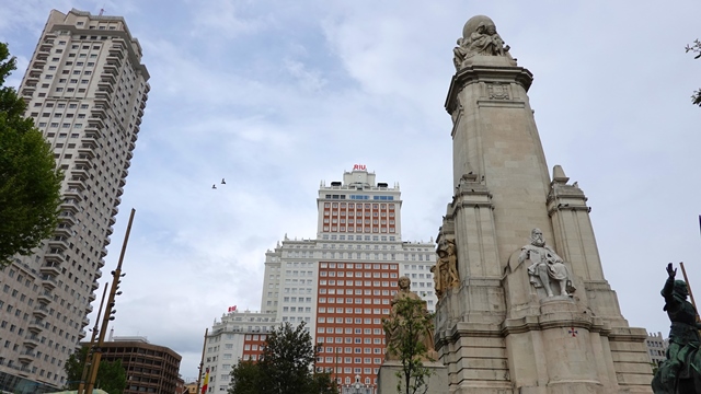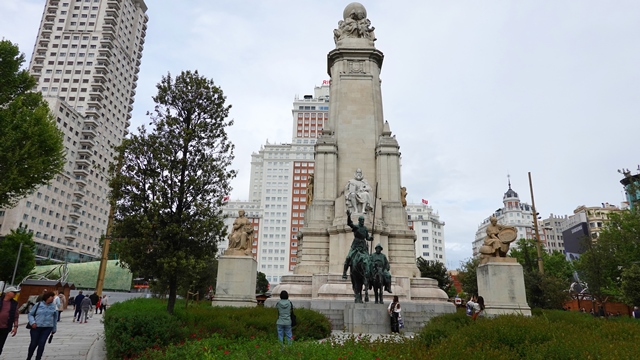 Retrocediendo sobre nuestros pasos, llegamos a la famosa Plaza de España, donde nos encontramos con las figuras en bronce de Don Quijote y Sancho Panza, un Monumento dedicado a Miguel de Cervantes.