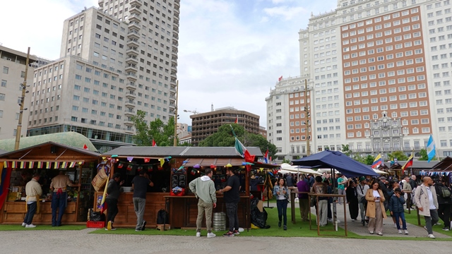 Nuestra visita a la plaza coincidió con una feria gastronómica dedicada a los países latinoamericanos, donde ofrecían una gran variedad de sus comidas más típicas.