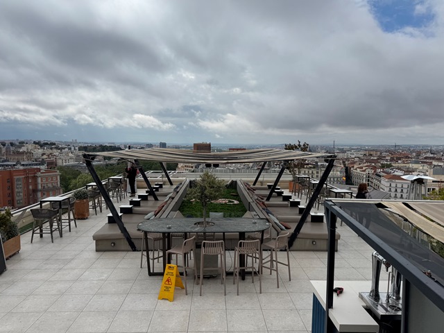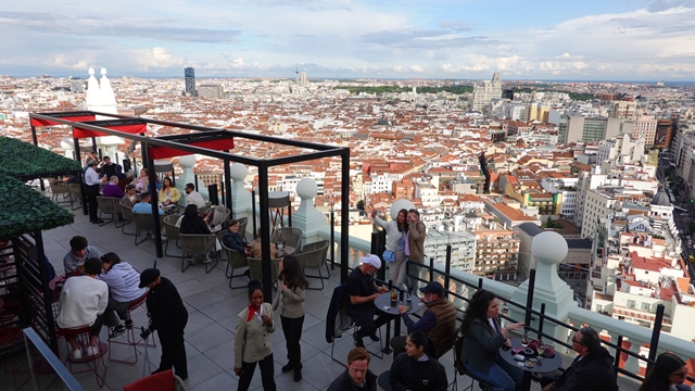 Hay varias actividades a realizar en la terraza, una de ellas es hacerte una foto en un balcón que sobresale sobre la calle con el suelo de vidrio con el Palacio Real de fondo, otra es pasear sobre una pasarela de vidrio que une las dos parte de la terraza y la mejor de todas tomarte algo contemplando el skyline. El horario es de 11h a 2h de la madrugada y el precio es de 5€ entre semana y 10€ los fines de semana.