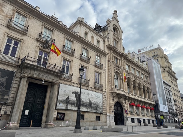 Una vez descendimos de la azotea del Mirador del Círculo de Bellas Artes, nos dirigimos andando hacia el Barrio La Latina, por el camino pasamos por la Plaza de Canalejas, llamada anteriormente Plaza de las Cuatro Calles pues convergen las calles de la Cruz, Sevilla, Príncipe y la Carrera de San Jerónimo .