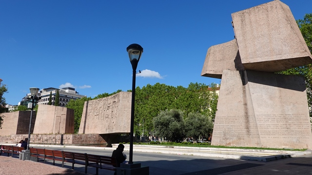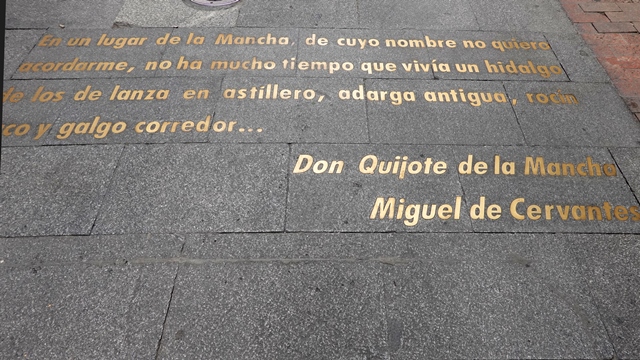Escritos sobre el pavimento, hay incrustados en letras de bronce algunos versos de literatos españoles.