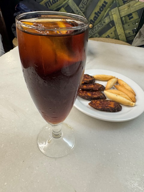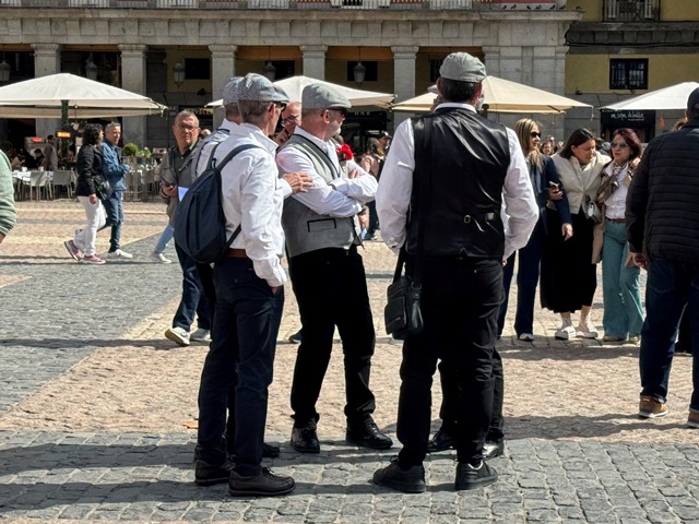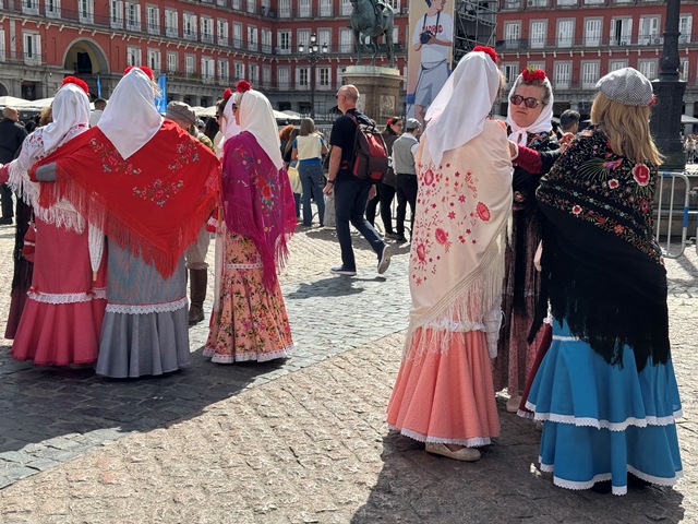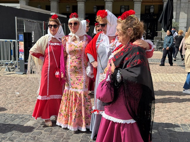 Tras la comida regresamos a la zona centro para seguir disfrutando del ambiente en las calles, nos tomamos un refresco sentados en una de la terrazas de la plaza Mayor viendo al gentío de las fiestas de san Isidro, coincidiendo con varios grupos vestidos de castizos con sus trajes de chulapo y de chulapa, pañuelo blanco en cuello y la gorra de cuadros.