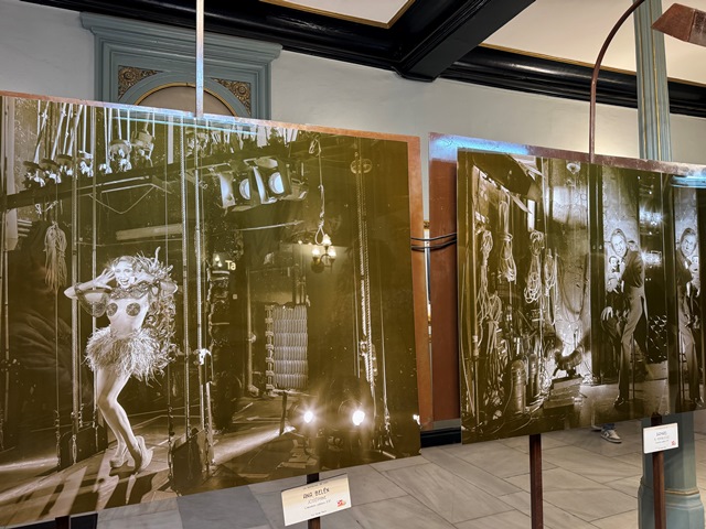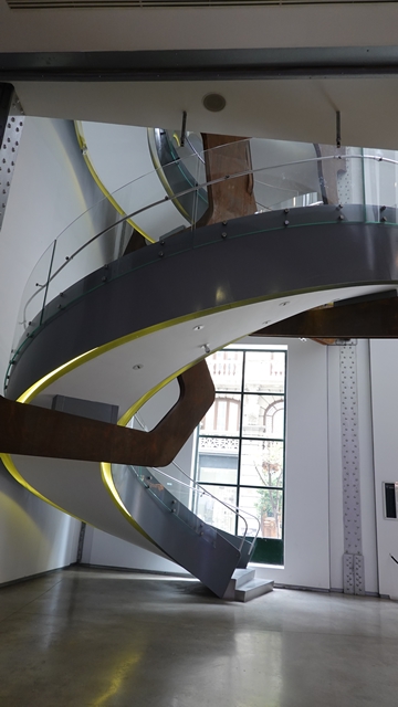 Tiene tres plantas con balcones que rodean el perímetro de la sala, donde hay más vitrinas de exposición, para subir lo hicimos a través de unas escaleras de caracol metálicas.