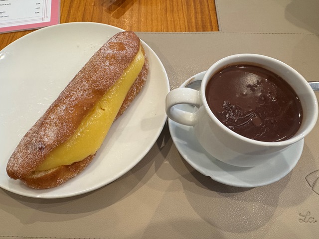 Desayunamos en la pastelería La Hermosita Corredera, que está en la Plaza de la Luna, muy cerca de nuestro hotel, donde ofrecen una gran variedad de pastas y bocadillos.
