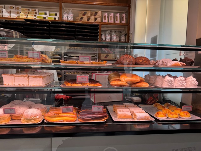 En el lado occidental de la plaza se encuentra la Pastelería La Mallorquina, donde desayunaríamos algunos días durante este viaje, eso si, hay que ir temprano o si no te tocará hacer bastante cola para poder desayunar o merendar.