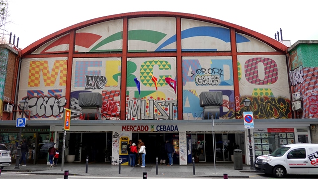 Entramos en el Mercado de la Cebada, uno de los mercados más grandes de la ciudad, está ubicado en la plaza del mismo nombre, fue construido en 1868 según diseño del arquitecto Mariano Calvo Pereira y renovado en el año 1958.