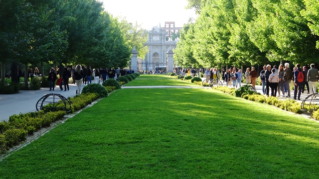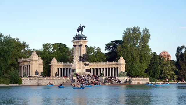 Regresamos al Parque del Retiro para ver el atardecer desde el Estanque Grande de El Retiro, un momento muy agradable para pasear por los jardines.