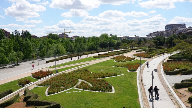 Cruzamos por el Puente de Toledo a la otra orilla del río otra vez para dirigirnos posteriormente hacia el Parque de Arganzuela, construido sobre antiguas dehesas, una zona muy agradable con parque infantiles con toboganes y chorros de agua en la llamada Playa de Madrid Río.