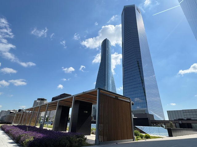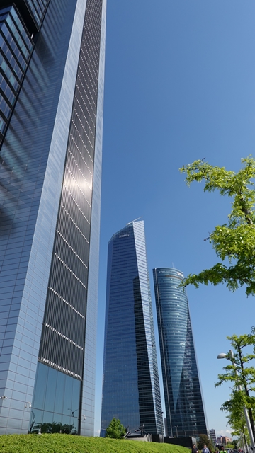 Nos apetecía conocer la zona de rascacielos de Madrid, empezando por el Cuatro Torres Business Area (CTBA), un parque empresarial situado al inicio del Paseo de la Castellana, construido donde antes se encontraba el Ciudad Deportiva del Real Madrid Club de Fútbol, aunque hoy en día se le ha añadido una quinta torre inaugurada en 2021.