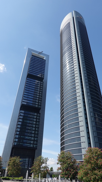 Hicimos varias fotografías por la zona, estos edificios de cristal siempre son muy fotogénicos, además se han añadido en los bajos algunas esculturas como Estatua de la Menina, la Escultura de globos y la Fuente las Cuatro Torres.