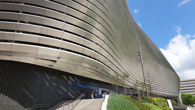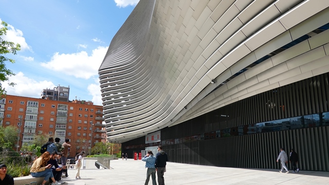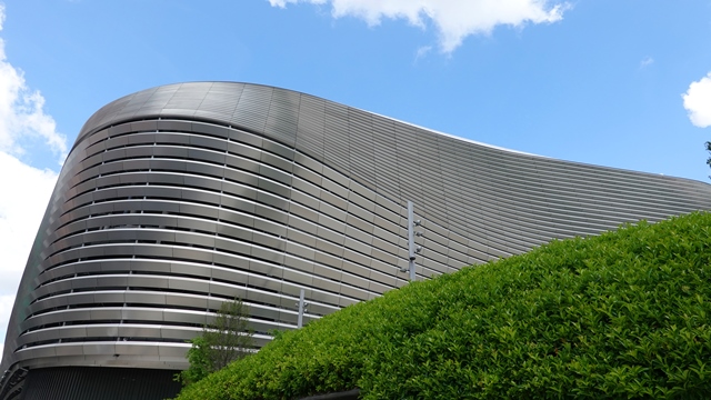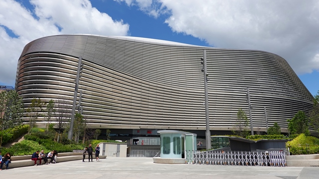 Situado un pco más abajo del Paseo de la Castellana, a unos 1500 metros, se encuentra el nuevo estadio del Santiago Bernabéu, con su fachada envolvente de láminas curvadas de acero inoxidable que reflejan la luz, la verdad es que ha quedado precioso.