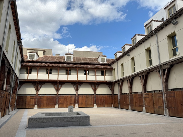 Atravesamos la Plaza de la Luna, que también estaba en obras para llegar al que sería nuestro alojamiento durante estos 5 días, el Hostal Goya Pizarro, situado en la calle de Pizarro, 13 y 14. Tiene la recepción en un local en el número 13 y las habitaciones están en el primer piso de un edificio en el número 14.
