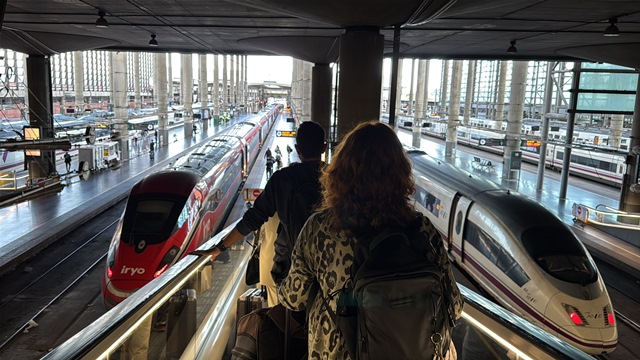 Iniciamos nuestro viaje a Madrid a las siete de la madrugada desde la estación de Sants, en Barcelona, tomando el tren de alta velocidad de la compañía Iryo que habíamos reservado previamente desde su web, el trayecto fue de tan solo dos horas y media, pues nos llevó directamente sin ninguna parada intermedia de Barcelona a Madrid.