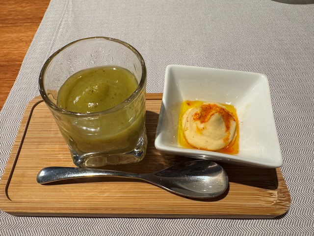 Una vez accedimos a la sala, nos acompañaron a la mesa, nos dieron la carta donde podíamos elegir entre los menús prediseñados por el chef o comer a la carta, en nuestro caso elegimos el menú llamado Experiencia Sensorial que consta de :