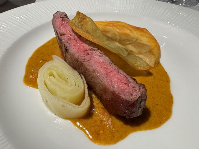Rib Eye de ternera Frisona poelé a la mantequilla de sal y Café de Paris con patata Anne y flor de repollo.