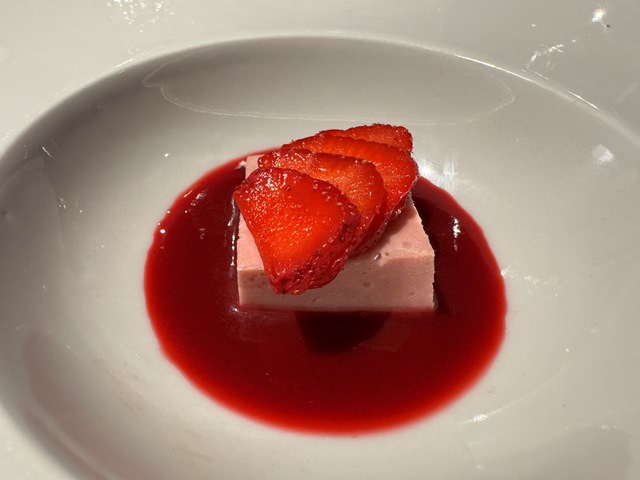 Charlotte de frambuesa en bavaresa aireada y pulpa de fresa al Croft Original.